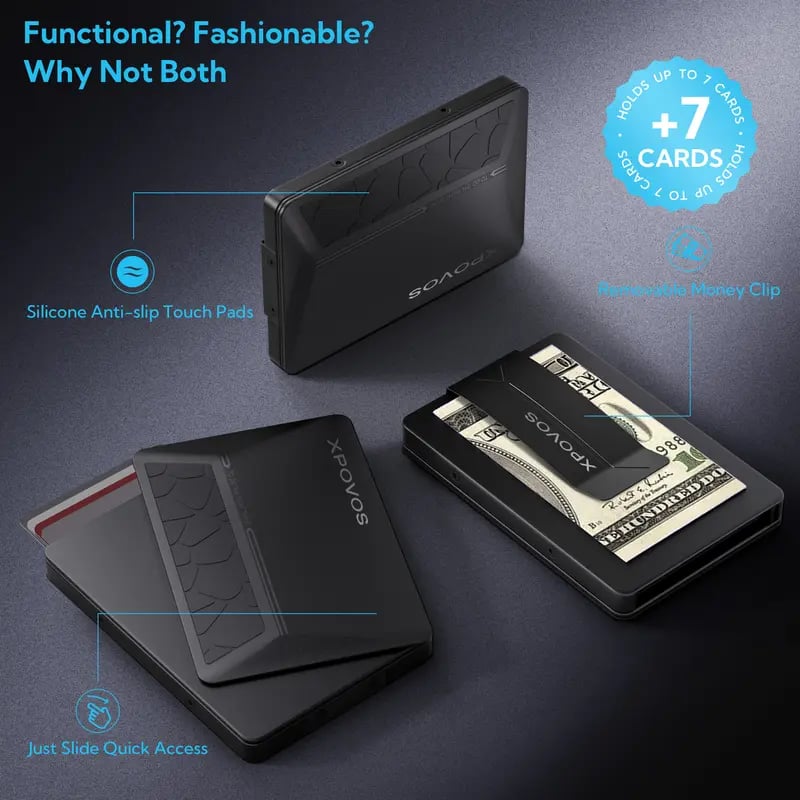 Holds up to 7 cards + cash while staying pocket-friendly and lightweight.